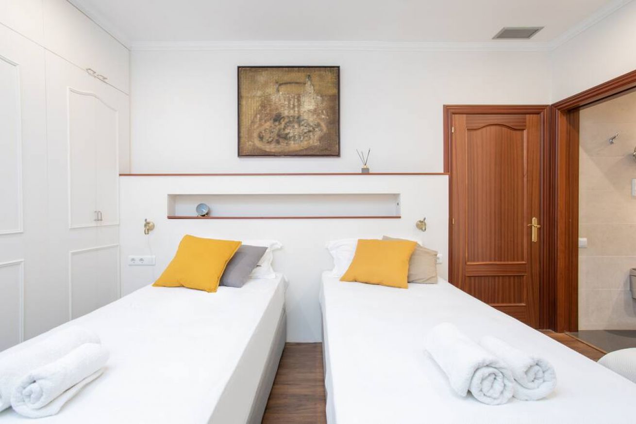 The apartment has capacity for up to 5 people distributed in 3 bedrooms: