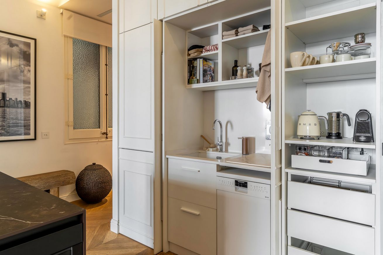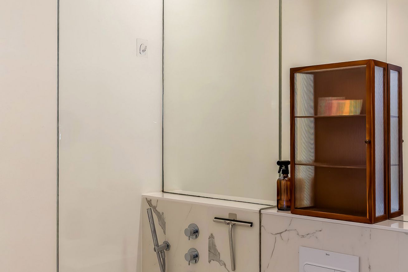 This 120 sqm apartment is the best option for a comfortable stay in a wonderful location. You will find all the amenities you might need during your stay, in beautifully designed and decorated spaces. Not to forget the lovely little terrace to enjoy some peace and fresh air.