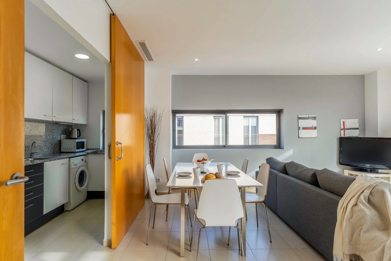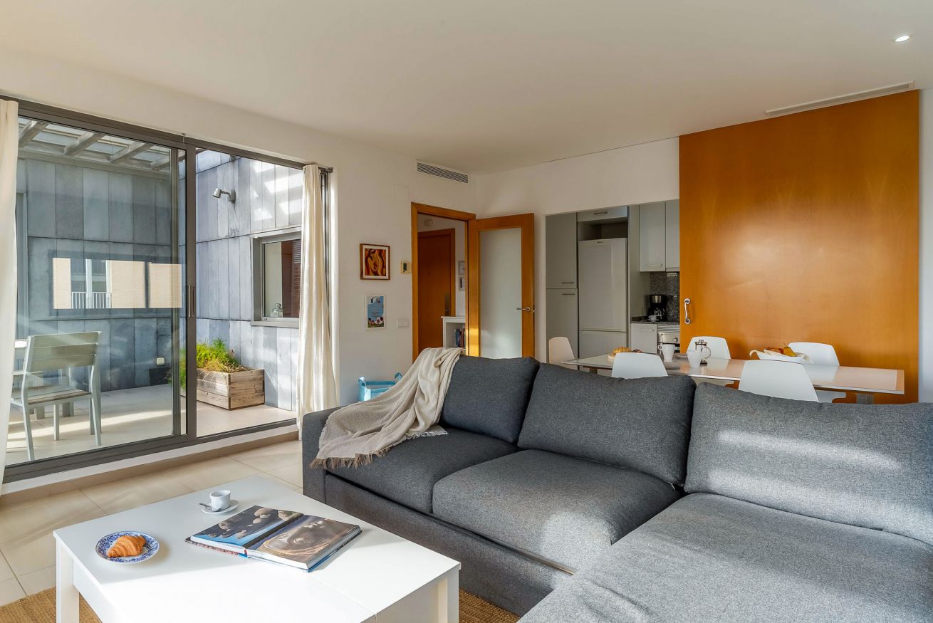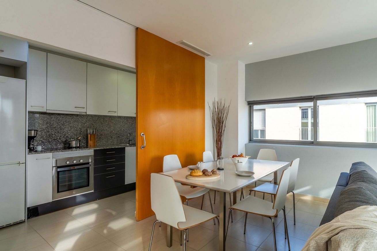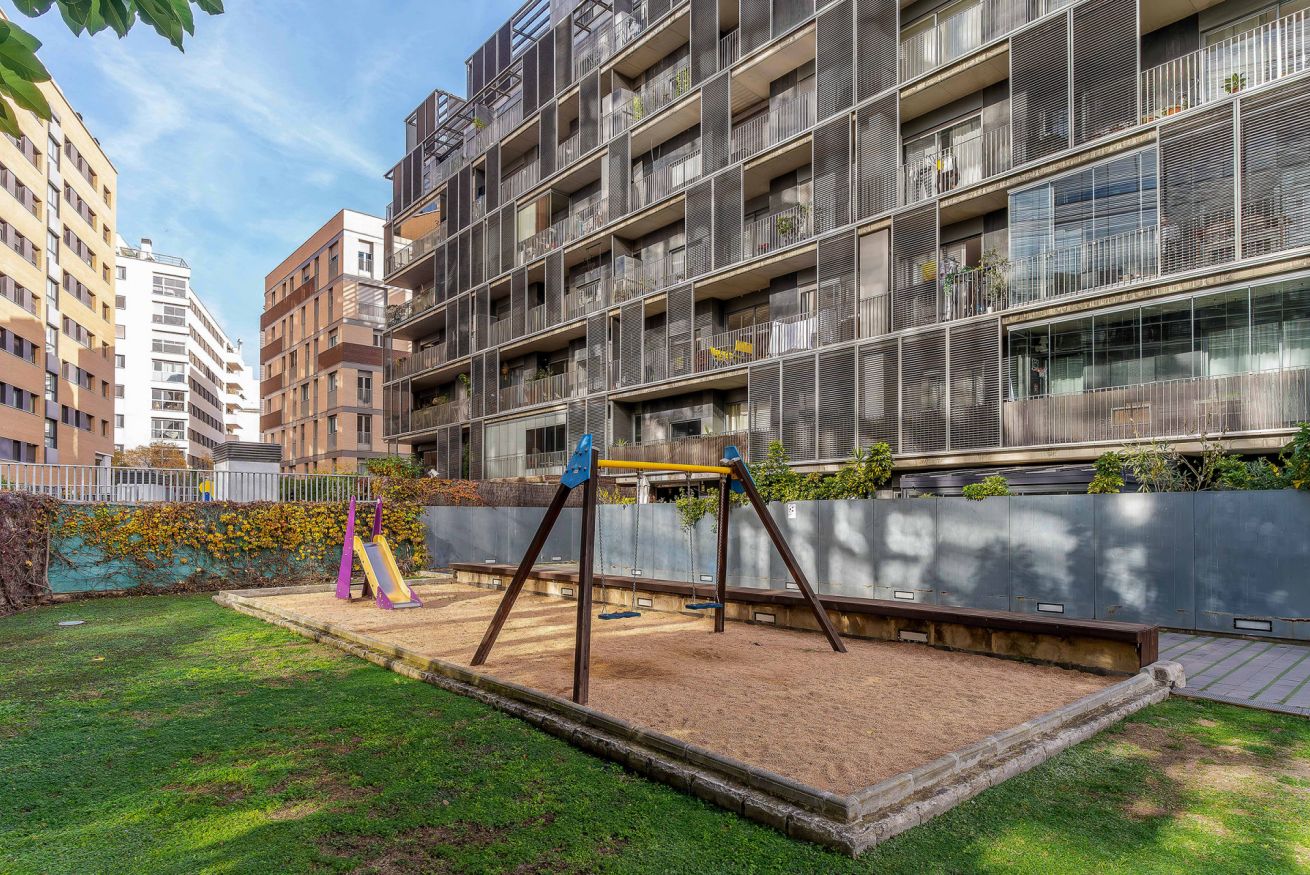 Family apartment with 2 double bedrooms in Poblenou. The area is close to the city centre and the beach, and the complex offers a community swimming pool.