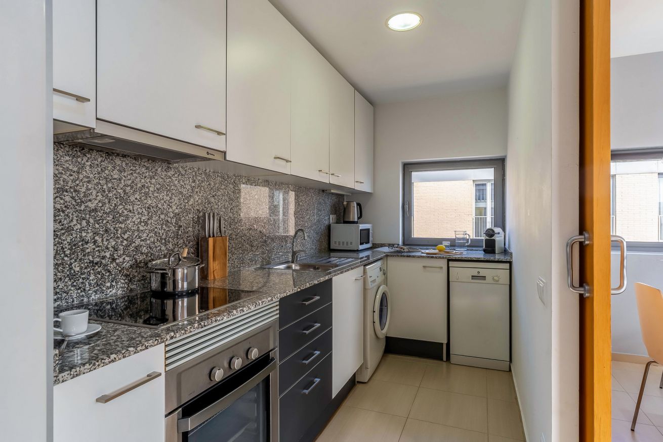 Fully equipped kitchen, washer, and dishwasher