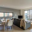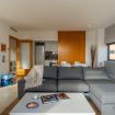 The apartment measures 70 m² and has a 36 m² private terrace. The day area offers a spacious living room, which opens onto the terrace, and an equipped kitchen, while the night area has two double bedrooms, one en-suite.